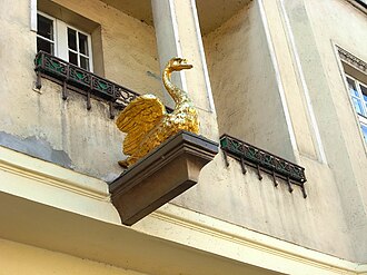 Dobrym przykładem jest Apteka pod Łabędziem przy ulicy Gdańskiej — jedna z najstarszych aptek w mieście działająca nieprzerwanie od 1853 do 2017 roku. Kamienny łabędź umieszczony na elewacji symbolizował czystość, troskę i zaufanie. Dziś we wnętrzu mieści się muzeum farmacji, a łabędź wciąż „czuwa”, przypominając o codziennej pracy dawnych aptekarzy i znaczeniu tego miejsca dla mieszkańców.