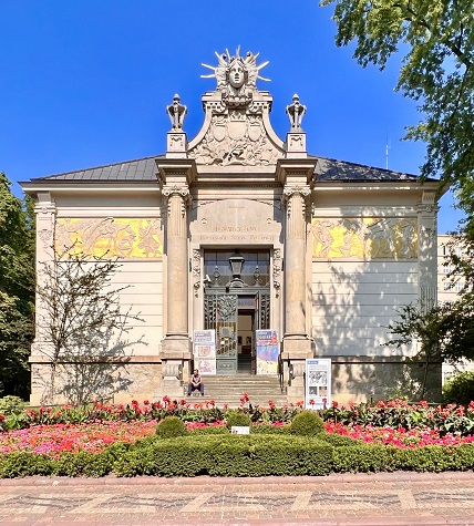 Najlepiej widać to na Placu Szczepańskim. Pałac Sztuki — pierwszy programowy przykład secesji w Krakowie — wygląda jak spokojniejszy kuzyn wiedeńskiej secesji Olbricha, ale z mocnym lokalnym akcentem: fryzem Malczewskiego opowiadającym o losach artysty.